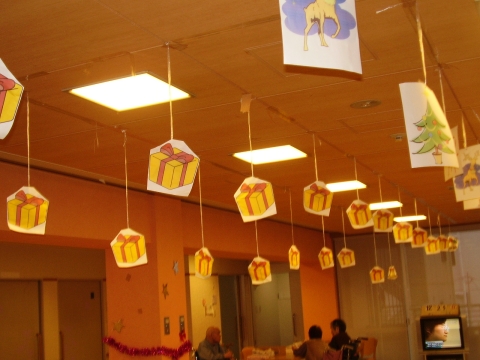 どが飾られ、利用者様も「綺麗やねぇ」と見られていました。 この飾りの中でのクリスマス会も皆様楽しまれていました。